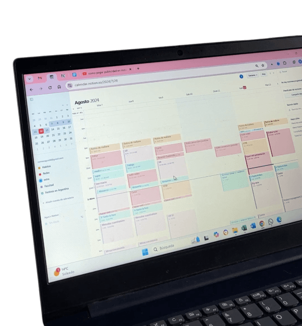 El método principal del curso es la organización por bloques de horas con un calendario digital, y crear rutinas para estructurar tus días.